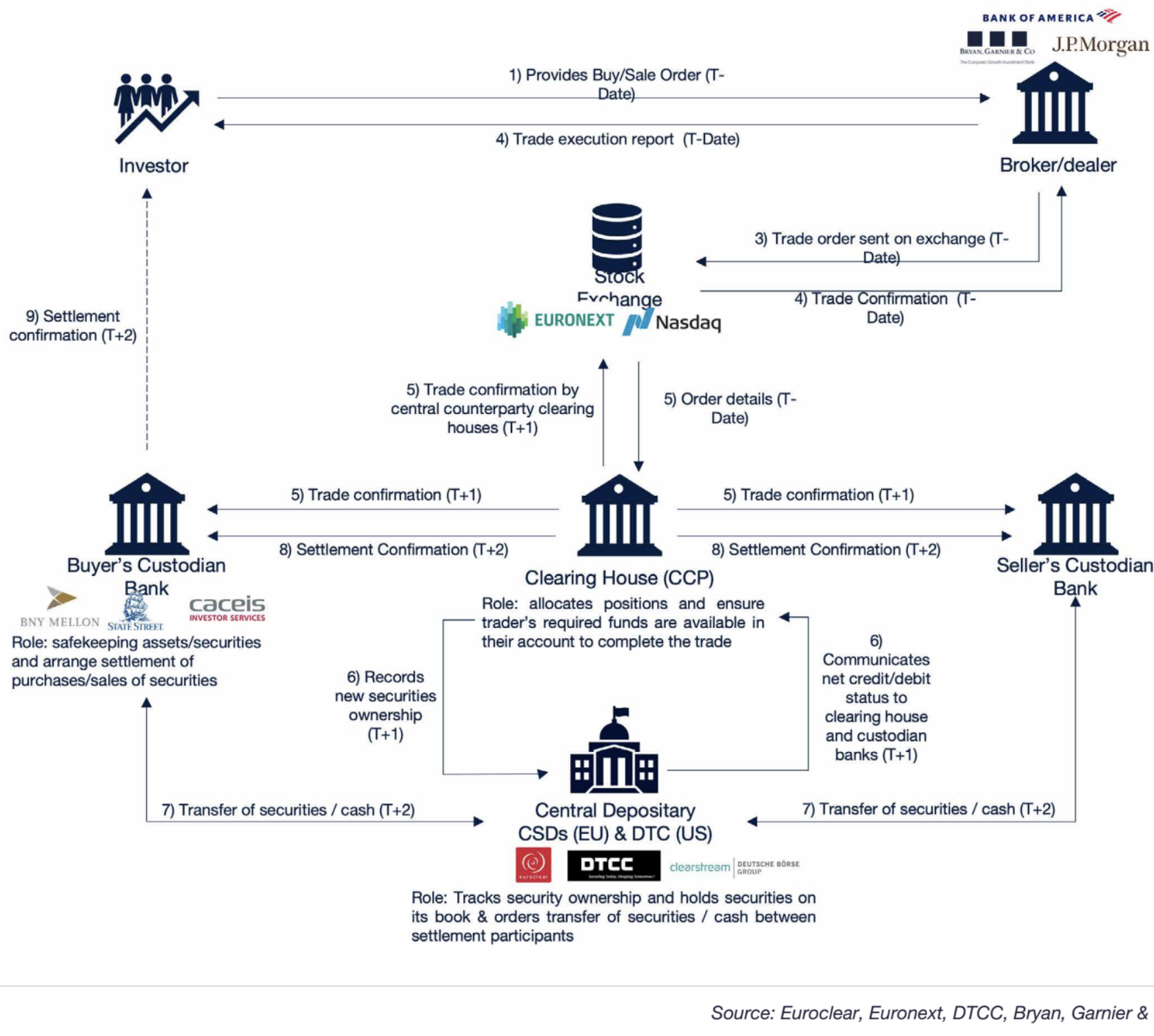 - Connected to a Central Securities Depository (CSD), which requires authorization under the CSDR (Central Securities Depositories Regulation).